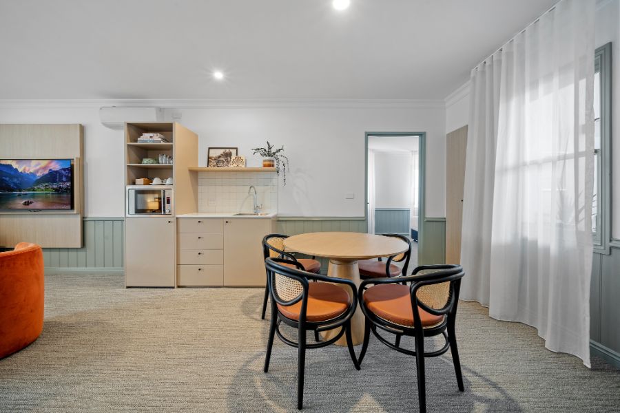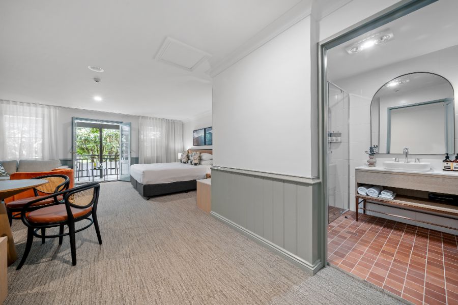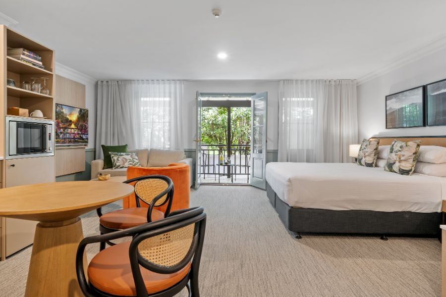 A contemporary spacious studio with your own private courtyard to enjoy the lush hotel garden views. You’ll be staying in luxury with special touches through the studio including Australian made premium bathroom amenities, luxury towels, and linen.